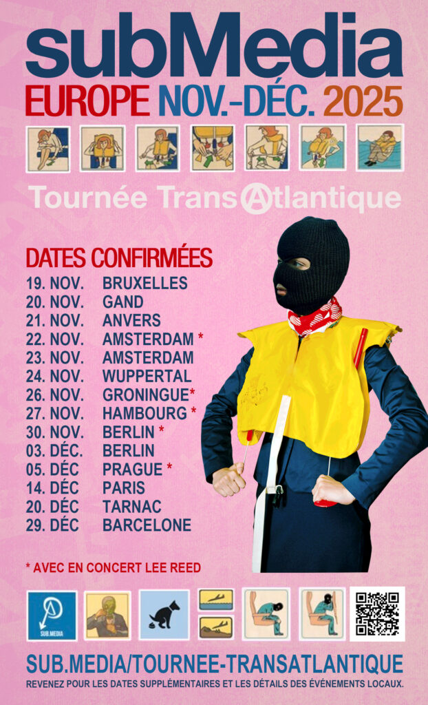 Ça fait plus de dix ans que subMedia n’a pas traversé l’Atlantique. Beaucoup de choses ont changé depuis lors. Il y a eu des événements plutôt énormes sur le plan politique. Et c’est sans oublier les innombrables émeutes, soulèvements et autres moments de rupture insurrectionnelle. Et on s’est occupés à raffiner les images explosives en analyse révolutionnaire pure, idéale pour une projection sur les murs des meilleurs squats et centres sociaux. Nous sommes donc ravis d’annoncer qu’en novembre et décembre 2025, alors que la civilisation continue à exploser en merdier ardent spectaculaire, l’équipe de subMedia sera de nouveau sur le sous-continent européen pour aller à la rencontre d’individus et d’organisations radicaux, découvrir des locaux et des projets radicaux, organiser des projections et des ateliers radicaux et graver le bon vieux cercle-A sur les rétines de nos hôtes. Nous aurons avec nous quelques classiques de notre catalogue ainsi que notre nouvelle série documentaire InterRebellium. Et comme si ce n’était pas assez, un de nos rappeurs anarchistes préférés nous accompagnera sur la première étape de la tournée, Lee Reed. On ne se rend pas souvent en Europe. Et personne ne sait à quoi le monde ressemblera en encore 10 ou 15 ans. Donc, faites tourner le message. Réapprovisionnez-vous en popcorn. Nous avons hâte de vous voir !